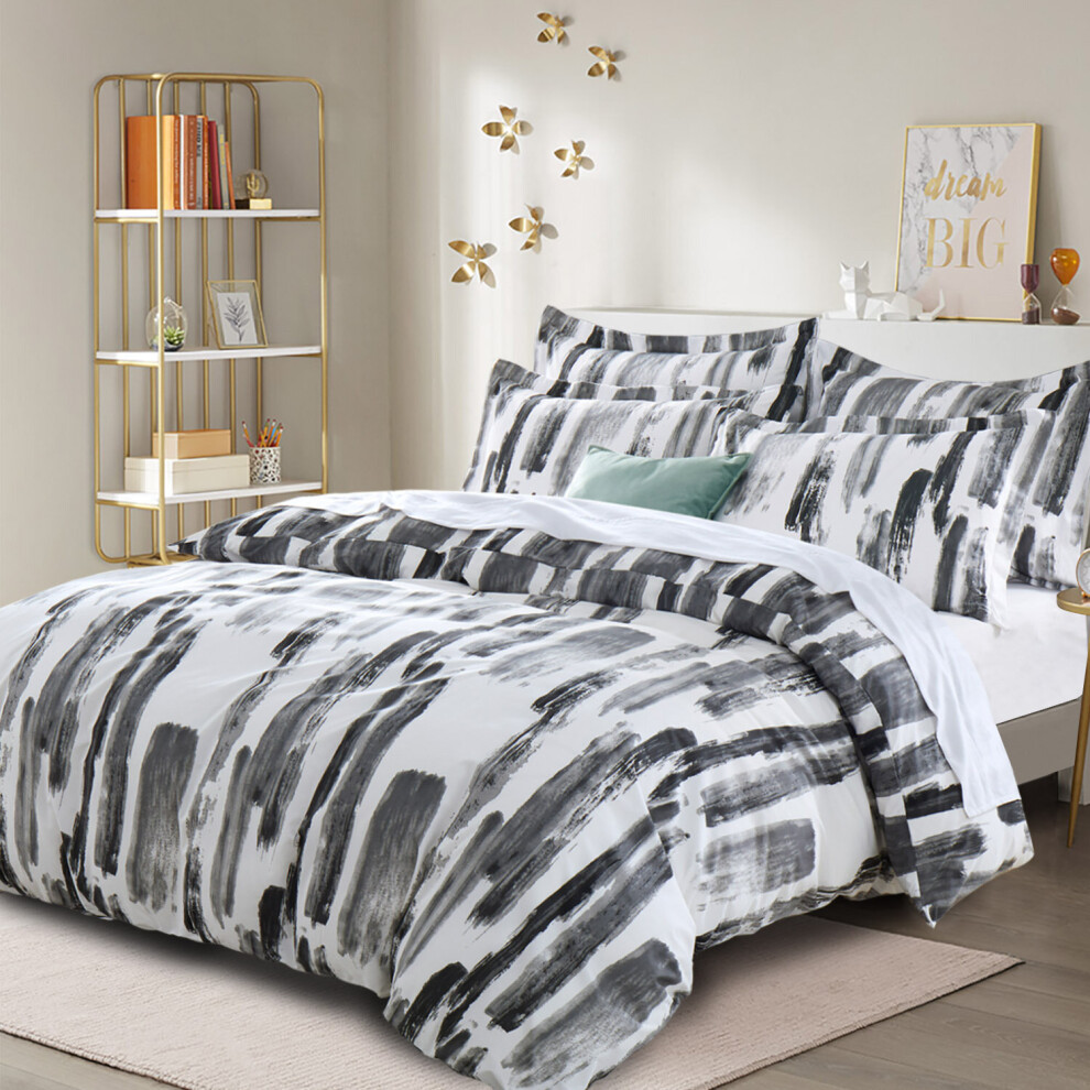 Yorkshire Bedding Double Duvet Set Soft Printed Bedding Set Brushed Microfiber Duvet Cover with Pillowcases (Grey Stripe 200x200 CM)