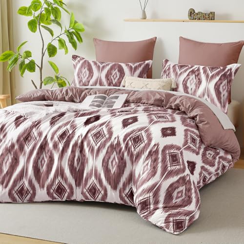 Boho Geometry Duvet Cover Set Double Bohemian Bedding Set for Boys Girls Adults Soft Reversible Gird Plaid Cube Duvet Cover with Zipper Closure (Pink, 200×200cm)