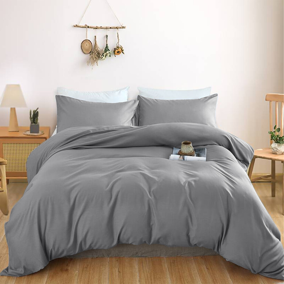 (KING, Grey) Plain Duvet Quilt Cover Double King Bedding Set UK