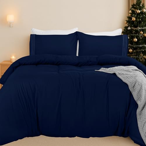Utopia Bedding Double Duvet Cover Set – Duvet Cover with Ruched Hem Pillow Cases – Soft Microfiber Polyester – Decorative Duvet Set (Navy)