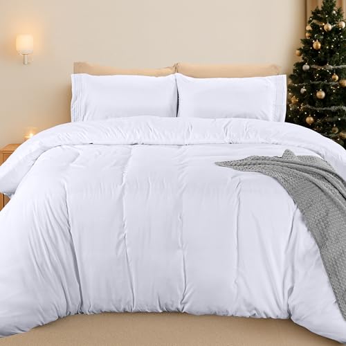 Utopia Bedding Double Duvet Cover Set – Duvet Cover with Ruched Hem Pillow Cases – Soft Microfiber Polyester – Decorative Duvet Set (White)
