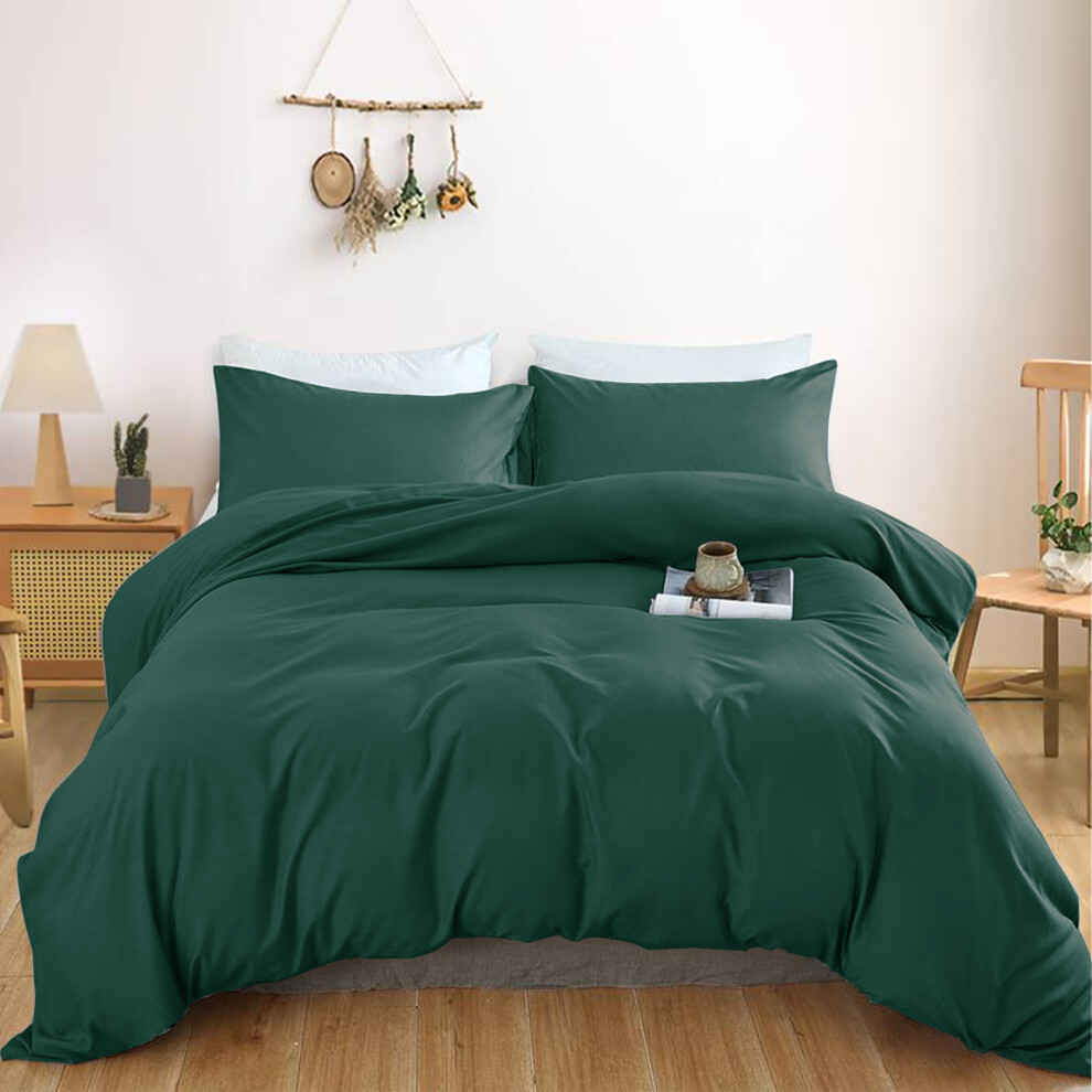 (DOUBLE, Green Emerald) Plain Duvet Quilt Cover Double King Bedding Set UK