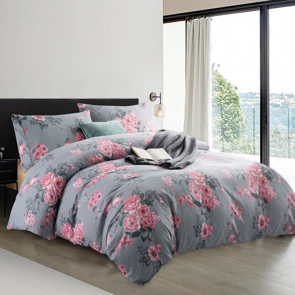 (Grey Bouquet, King: 230 x 220 cm.) Moonlight Bedding Duvet Quilt Cover Reversible Printed Single Double King Size Bedding Set