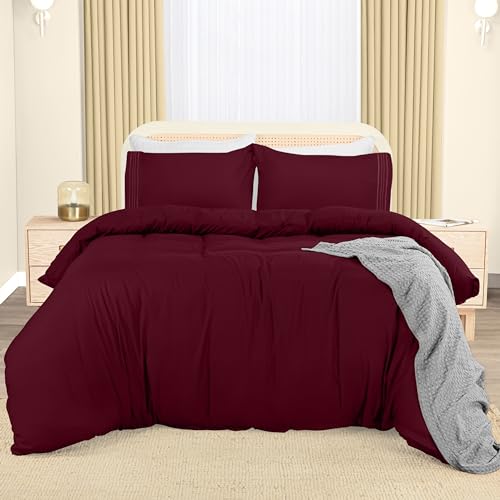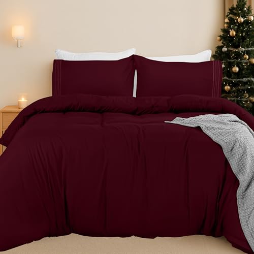 Utopia Bedding 4 Piece Double Bedding Set - Duvet Cover, Fitted Sheet with Pillow cases - Soft Brushed Microfiber (Burgundy)