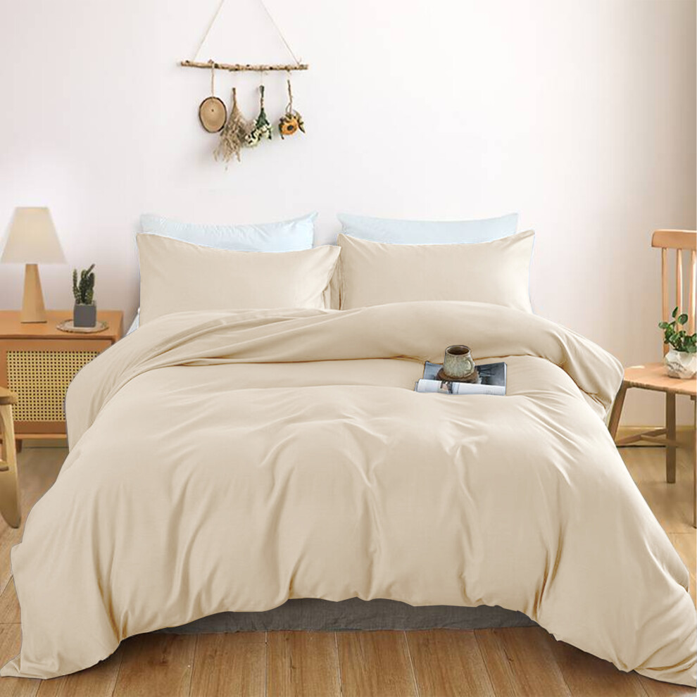 (KING, Beige) Plain Duvet Quilt Cover Double King Bedding Set UK