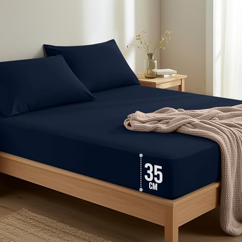 Utopia Bedding Double Fitted Sheet with 2 Pillow Cases (50x75cm), Navy - Deep Pocket (35 cm) - Bed Sheets Set - OEKO-TEX Certified - Soft Brushed Microfibre