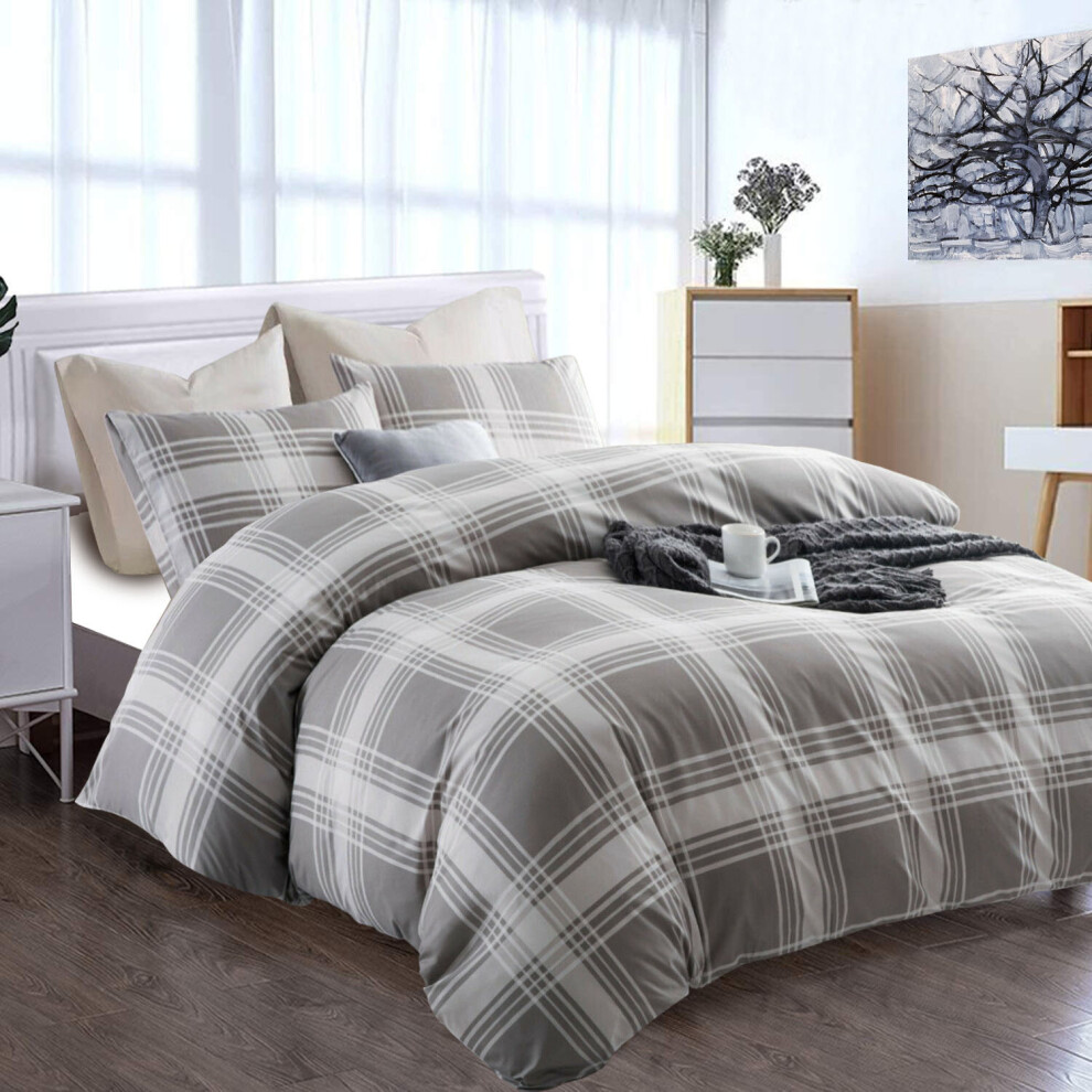 (Check) Reversible Duvet Quilt Cover Printed Double Bedding Set