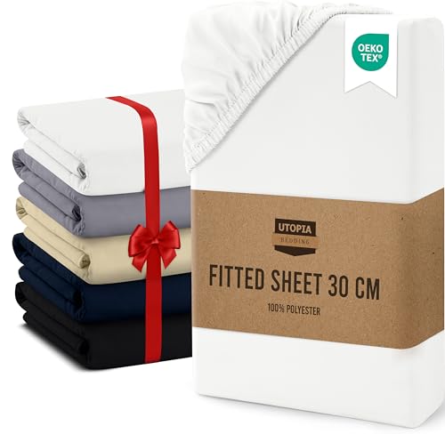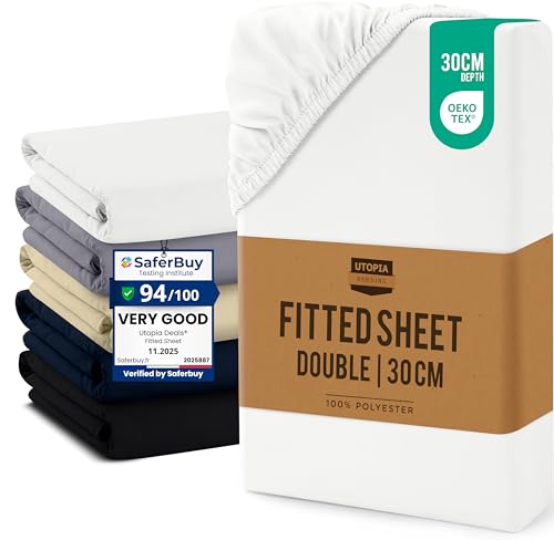 Utopia Bedding Double Fitted Sheet, White - Up to 12 Inch (30cm) Deep - Easy Care - Soft Brushed Microfibre Fabric - Shrinkage and Fade Resistant - Oeko-Tex Certified - Bottom Sheet