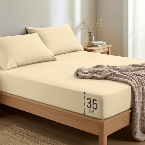 Utopia Bedding Double Fitted Sheet with 2 Pillow Cases (50x75cm), Beige - Deep Pocket (35 cm) - Bed Sheets Set - OEKO-TEX Certified - Soft Brushed Microfibre