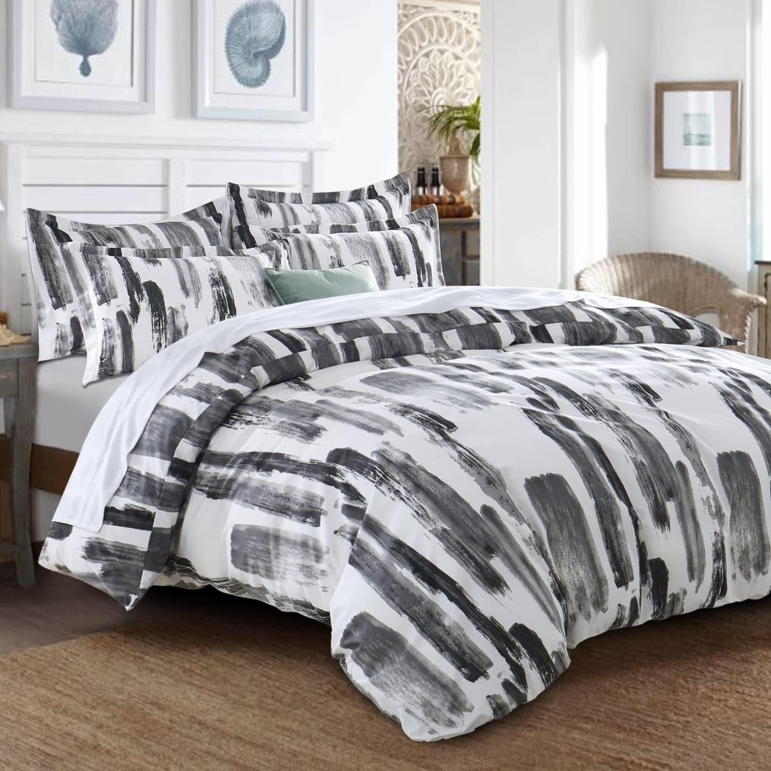 Yorkshire Bedding Double Duvet Set Soft (200 x 200 Cm), Striped Grey