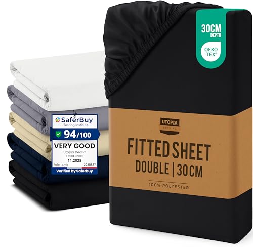 Utopia Bedding Double Fitted Sheet, Black - Up to 12 Inch (30cm) Deep - Easy Care - Soft Brushed Microfibre Fabric - Shrinkage and Fade Resistant - Oeko-Tex Certified - Bottom Sheet