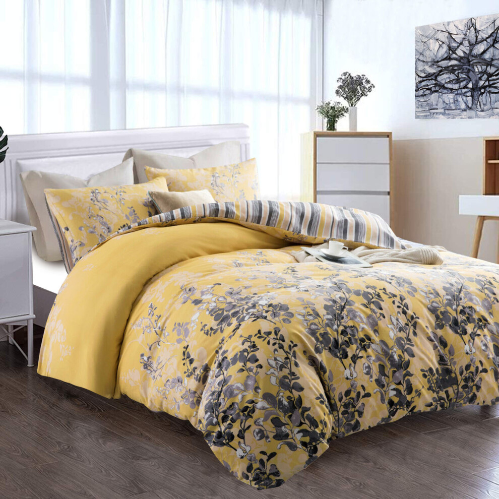(Ochre Blossom) Reversible Duvet Quilt Cover Printed Double Bedding Set