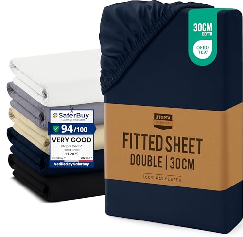 Utopia Bedding Double Fitted Sheet, Navy - Up to 12 Inch (30cm) Deep - Easy Care - Soft Brushed Microfibre Fabric - Shrinkage and Fade Resistant - Oeko-Tex Certified - Bottom Sheet