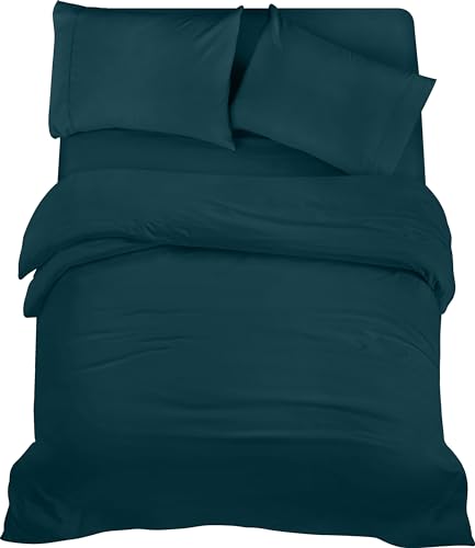 Utopia Bedding 4 Piece Double Bedding Set - Duvet Cover, Fitted Sheet with Pillow cases - Soft Brushed Microfiber (Teal)