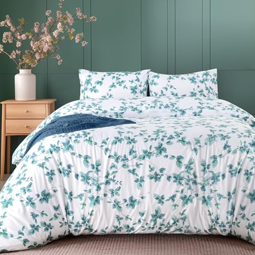 Utopia Bedding Double Leaves Mint Print Duvet Cover Set - Soft Microfibre Polyester - Bedding Quilt Cover Set