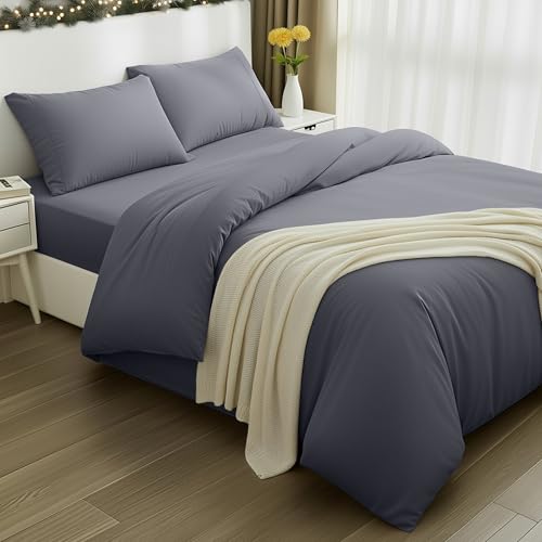 Utopia Bedding 4 Piece Double Bedding Set - Duvet Cover, Fitted Sheet with Pillow cases - Soft Brushed Microfiber (Grey)