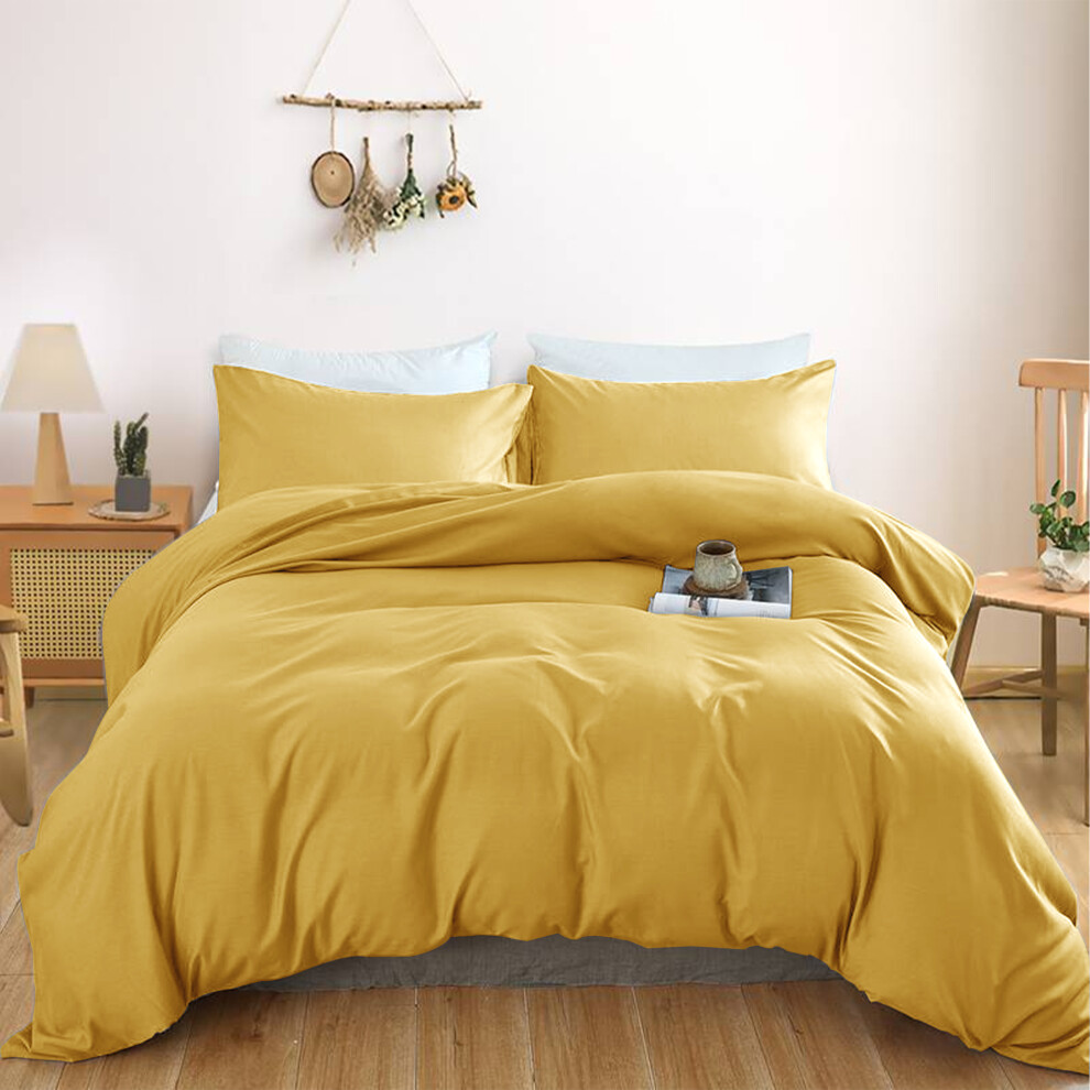 (DOUBLE, Ochre) Plain Duvet Quilt Cover Double King Bedding Set UK