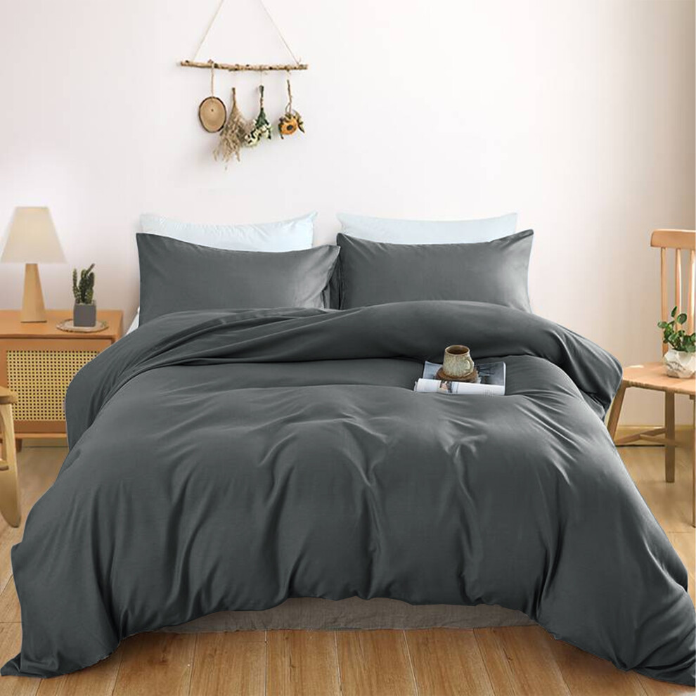 (DOUBLE, Charcoal) Plain Duvet Quilt Cover Double King Bedding Set UK
