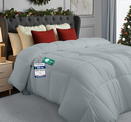 Utopia Bedding Double Duvet – 4.5 Tog Lightweight Coverless All Season Duvet, Soft Breathable Microfiber with Box Stitching, 200x200 cm (Light Grey)