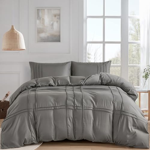 Utopia Bedding Double Duvet Cover Set – Duvet Cover with Ruched Hem Pillow Cases – Soft Microfiber Polyester – Decorative Duvet Set (Grey)
