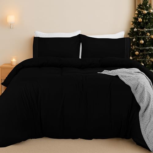 Utopia Bedding Double Duvet Cover Set - Duvet Cover Double with Embroidered Pillowcases - Soft Microfibre Polyester Bedding (Black)