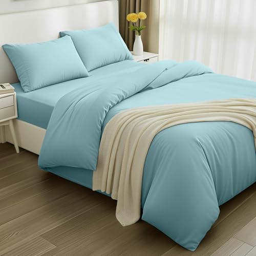 Utopia Bedding 4 Piece Double Bedding Set - Duvet Cover, Fitted Sheet with Pillow cases - Soft Brushed Microfiber (Spa Blue)