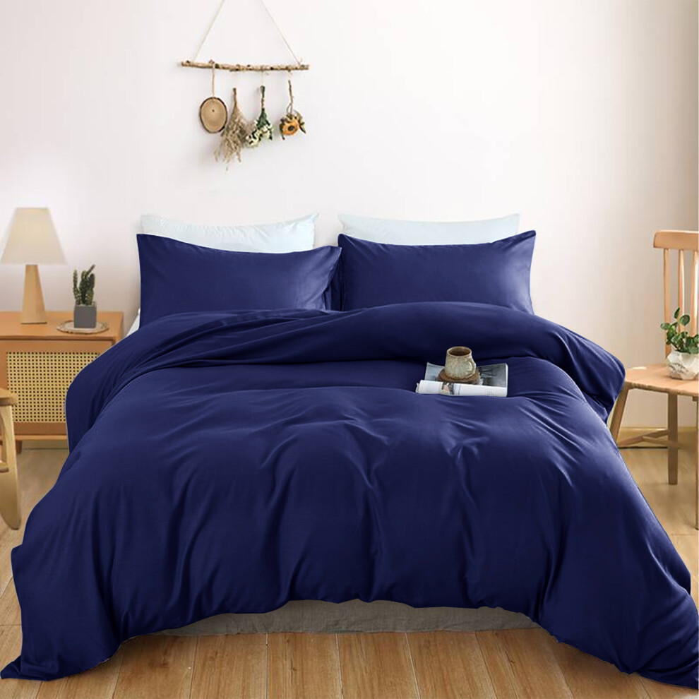 (KING, Blue) Plain Duvet Quilt Cover Double King Bedding Set UK