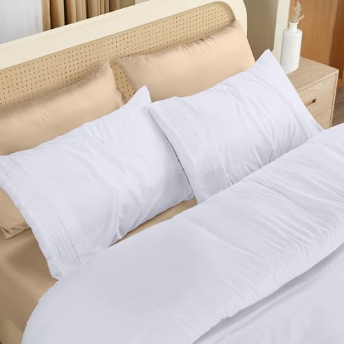 Utopia Bedding 4 Piece Double Bedding Set - Duvet Cover, Fitted Sheet with Pillow cases - Soft Brushed Microfiber (White)