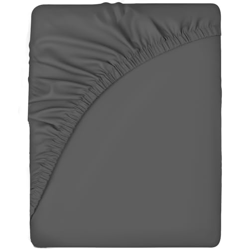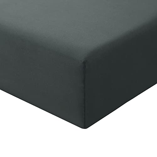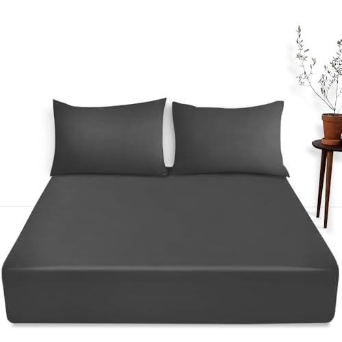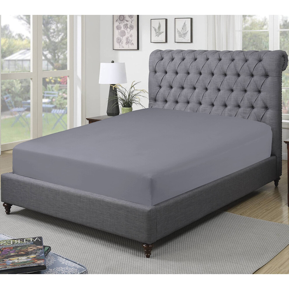 Luxury Bedding Fitted Sheet Double - Plain Dyed Charcoal Bed Sheet - Polycotton Deep Pockets Bedsheet 16 inch (40 cm) - Machine Washable