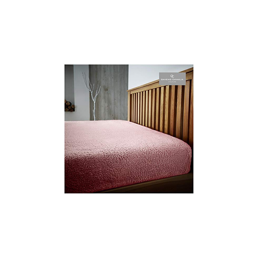 Easy Care Plain Teddy Fleece Fitted Sheet, Luxury Bedding Accessory, Soft & Cosy Bed Linen, Pink, Double Size Bedsheet