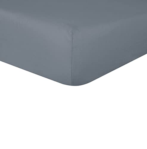 Sleepdown 100% Pure Cotton Deep Fitted Sheet Warm Cosy Breathable Super Soft Bedsheet Bed Linen 32cm Extra Deep Pockets - Slate - Double,5056557500710