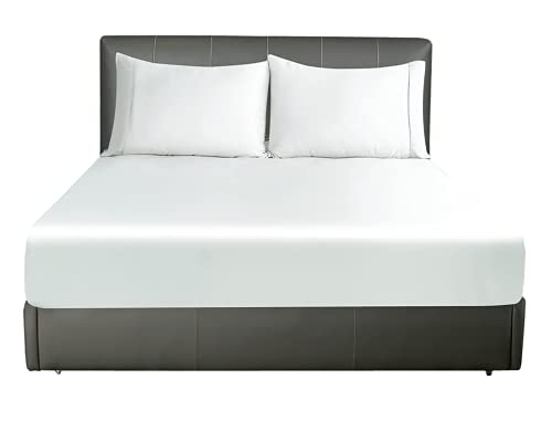 Sleepdown Hotel Quality Fitted Sheet 100% Cotton Satin Stripe Warm Cosy Breathable Super Soft Bedsheet Bed Linen Easy Care 32cm Extra Deep Pockets - White - Double (5056557513987)