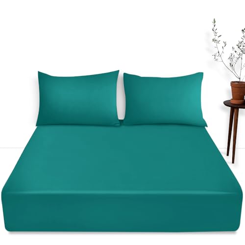 Luxury Bedding Fitted Sheet Double - Plain Dyed Deep Teal Bed Sheet - Polycotton Deep Pockets Bedsheet 16 inch (40 cm) - Machine Washable