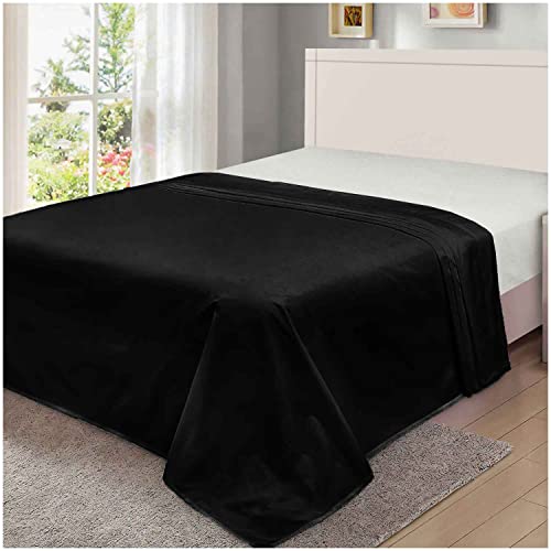 GC GAVENO CAVAILIA Luxury Polycotton Fitted, Easy Care, Soft & Cosy Bedsheet OR Pillowcases, Linen, Black-Flat Sheet, Double