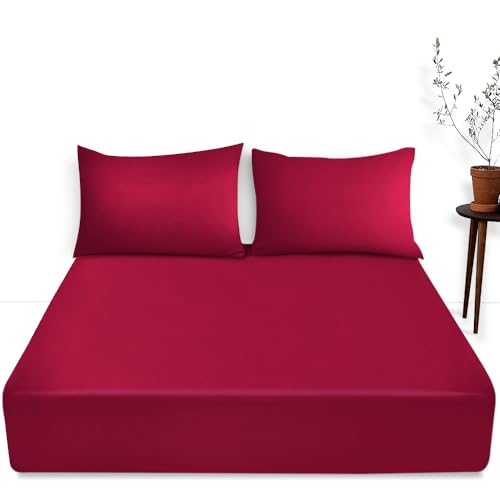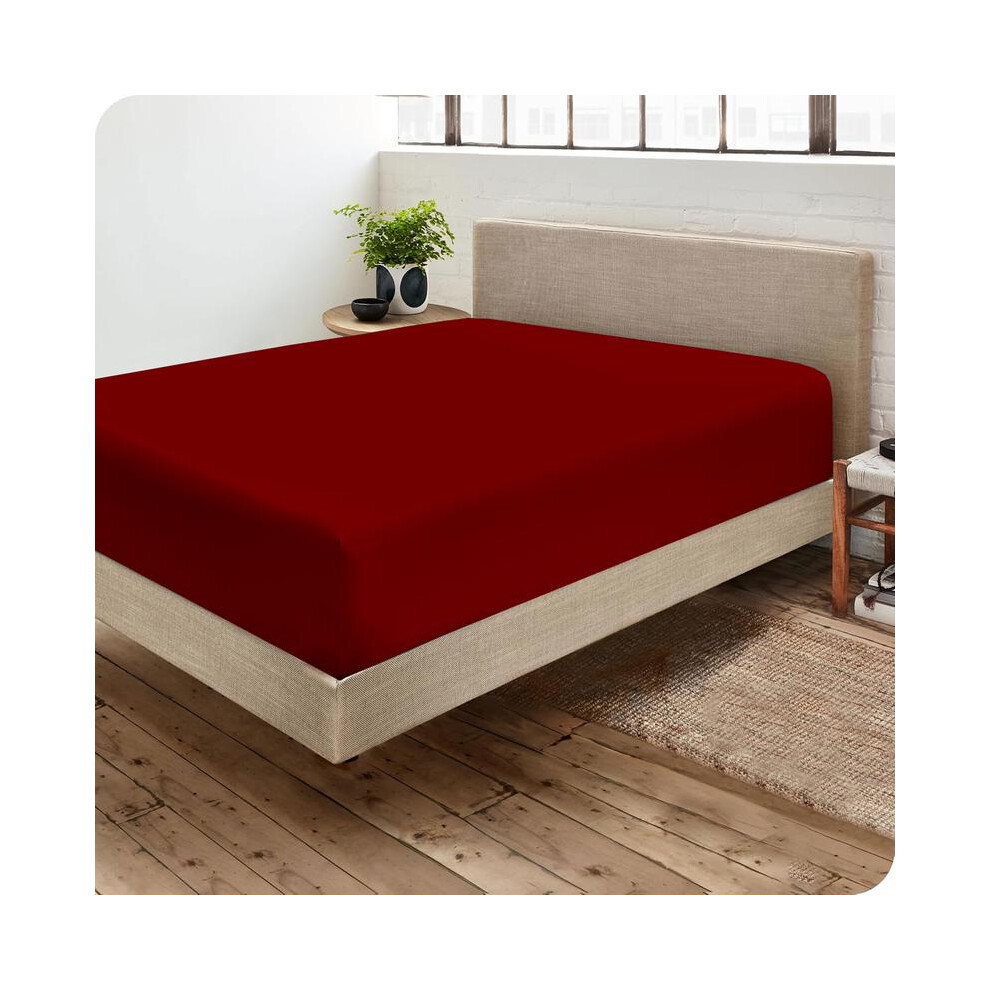 GC GAVENO CAVAILIA Luxury Bedding Fitted Sheet Double - Plain Dyed Red Bed Sheet - Polycotton Deep Pockets Bedsheet 16 inch (40 cm) - Machine Washable, 709213