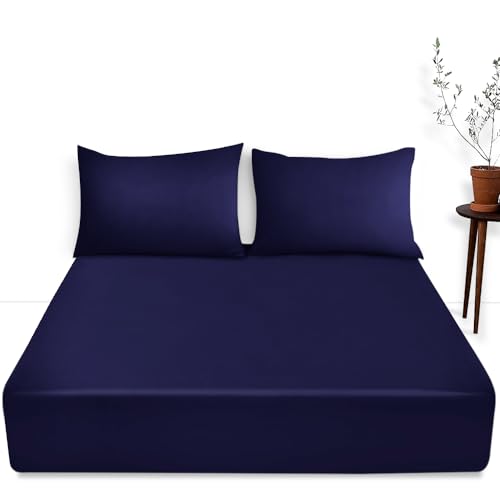 Luxury Bedding Fitted Sheet Double - Plain Dyed Navy Bed Sheet - Polycotton Deep Pockets Bedsheet 16 inch (40 cm) - Machine Washable