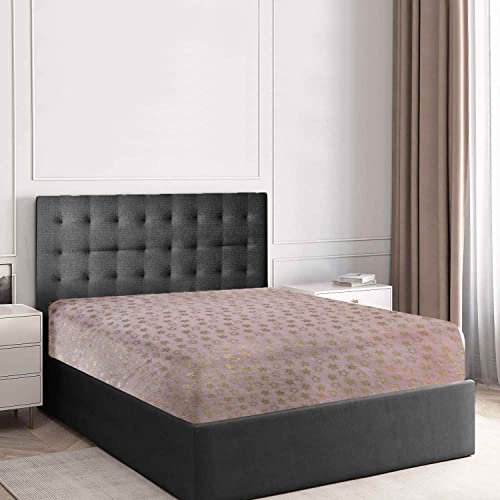 GC GAVENO CAVAILIA Teddy Fleece Star Foil Duvet Set, Super Soft Fluffy Cosy Warm Shiny Bedding & Bedsheet, 2 Piece Easy Care DuvetCover & Deep Elastic Band Bedlinen, Pink, Double Fitted Sheet