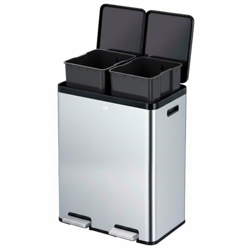 Homra Dual Kitchen Bin 60l – Double Rubbish Bins 2x30l – 2 Compartment Pedal System – Twin Section Waste&Recycling Separation – Soft Close Design – Inner Buckets with Handles - Stainless Steel