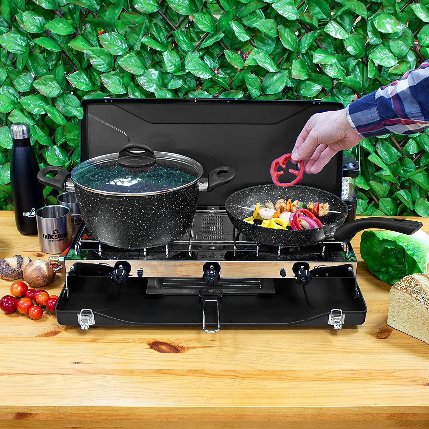 Milestone Camping 18929 Double Burner Gas Stove and Grill / Powerful Performance
