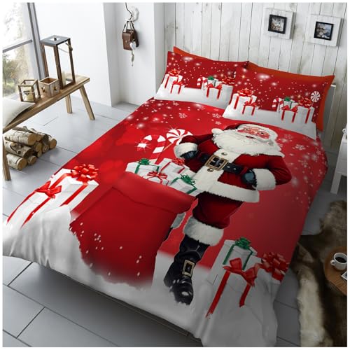 GC GAVENO CAVAILIA Santa Cloak Xmas Duvet Cover - Festive Christmas Double Bedding Set with Pillowcases - Soft Hypoallergenic Polyester Quilt Cover Bed Set (200x200 cm) - Easy Care Winter Bed Linen