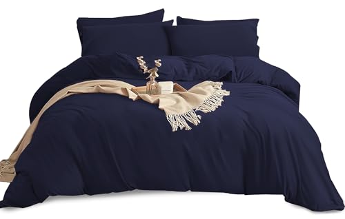 Imperial Rooms Double Duvet Cover Set – Brushed Microfiber Plain Navy Christmas Bedding Set with Pillow Cases – Ultra Soft Button Closure Quilt Cover (200 x 200 Cm)