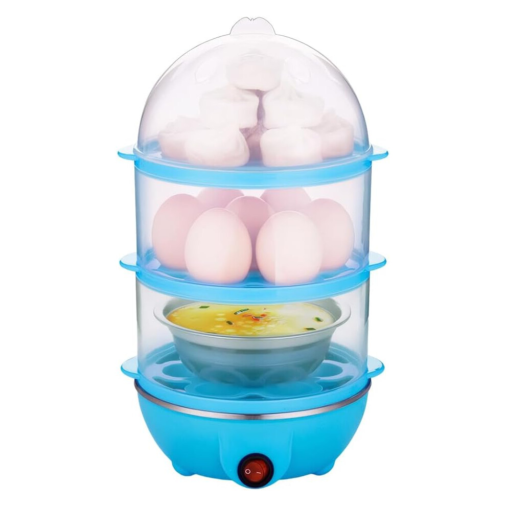 (Blue) Egg Cooker,350W Rapid Electric Egg Maker,Egg Steamer,Egg Boiler,Egg Cookers With Automatic Shut Off,14 Egg Capacity Double-Layer Lazy Egg Boile