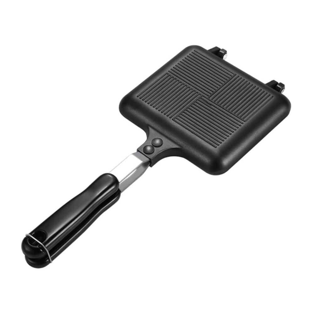 Non Stick Double Sided Sandwich Maker Pan With Aluminum Alloy Griddle For Induction And Gas Cookers Black Easy To Clean