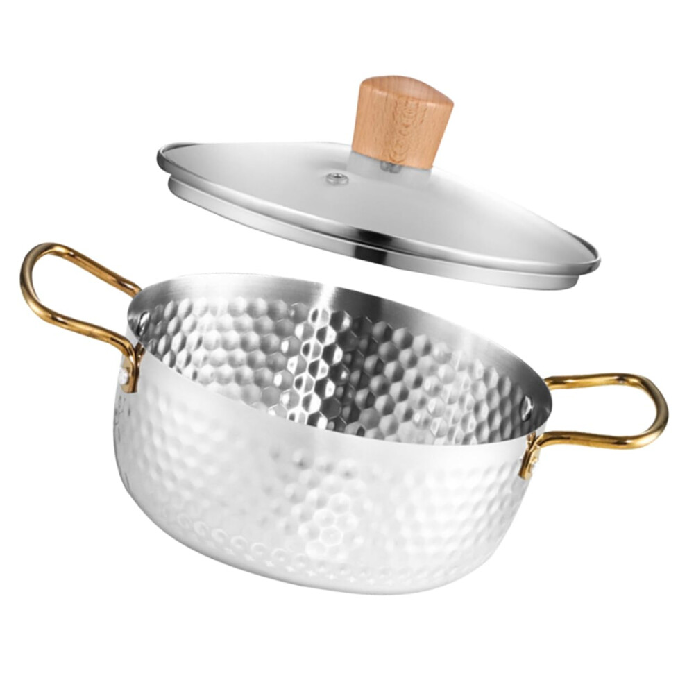 Ramen pot with lid small noodle and soup pot with double handle for induction cookers high temperature resistant and easy to clean
