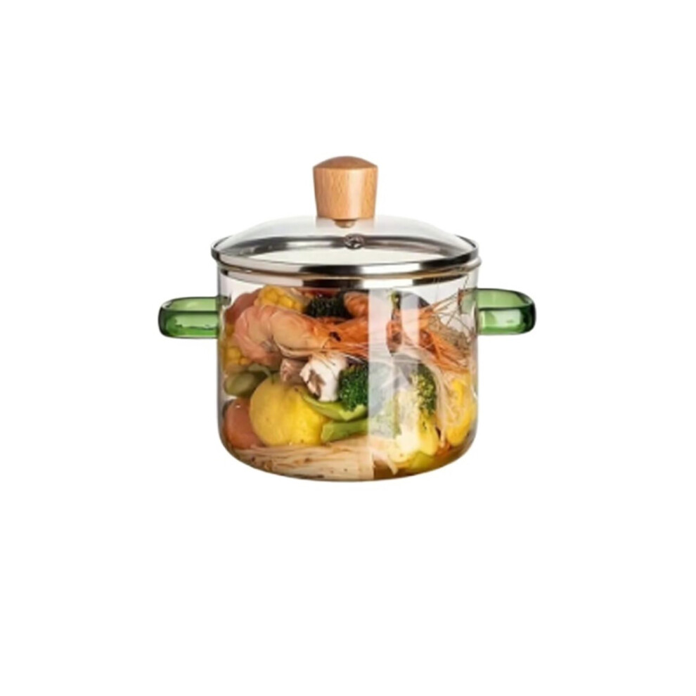 Glass Pot, Clear Cooking Pot, Stockpot, Heating, Double Handles, Glass Pot with Lid, Kitchen Cooking Utensils for All Types of Cookers (SmallGreen)