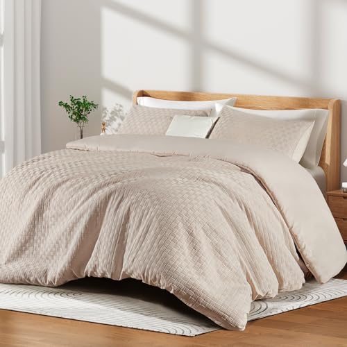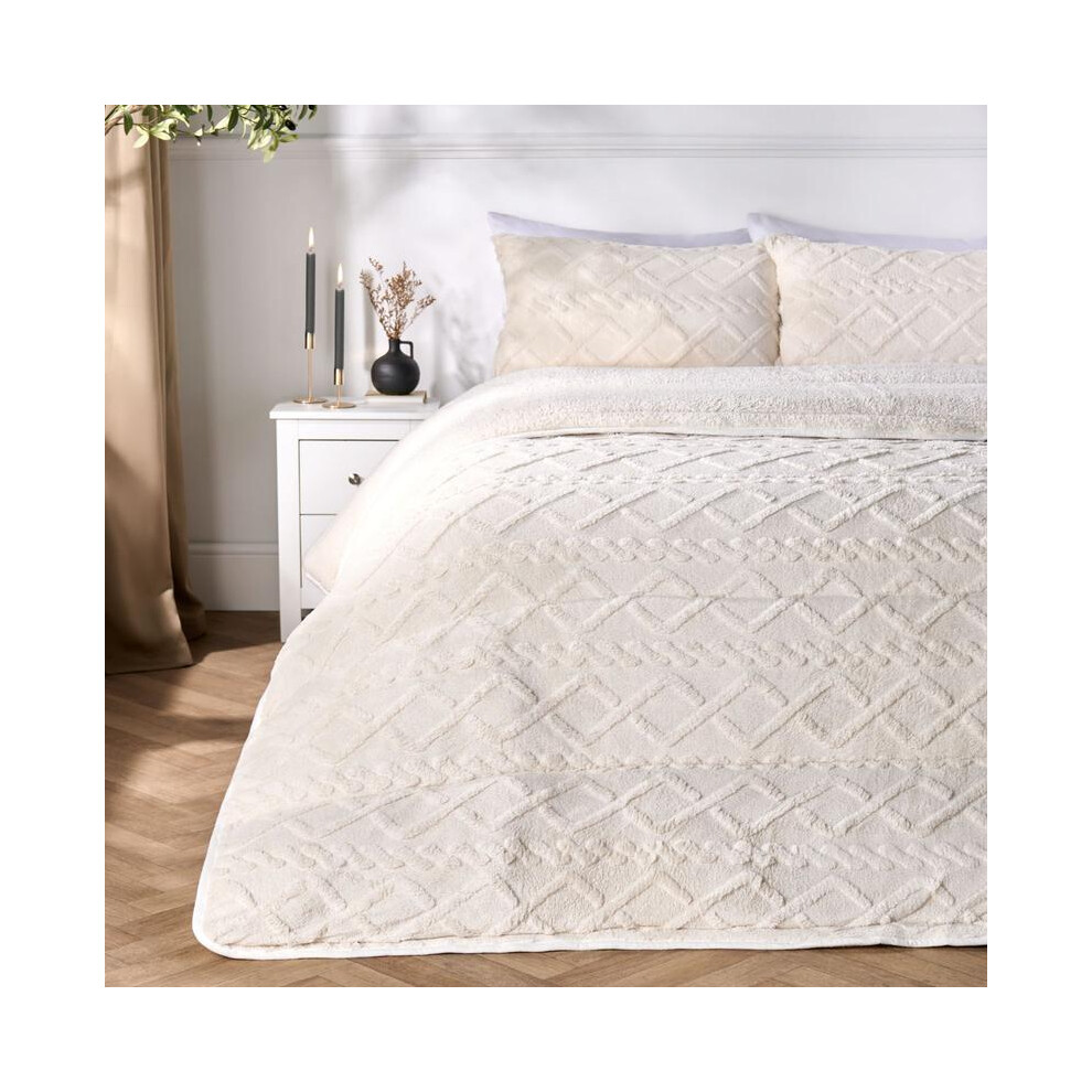 (Arches Cream, Double) OHS Coverless Quilted Duvet with Pillowcase Set Soft Fleece Teddy Sherpa Cable Knit 7.5/10.5 TOG All Year Round Summer Winter C