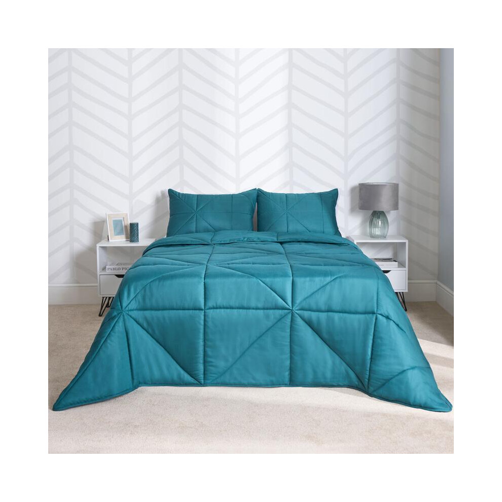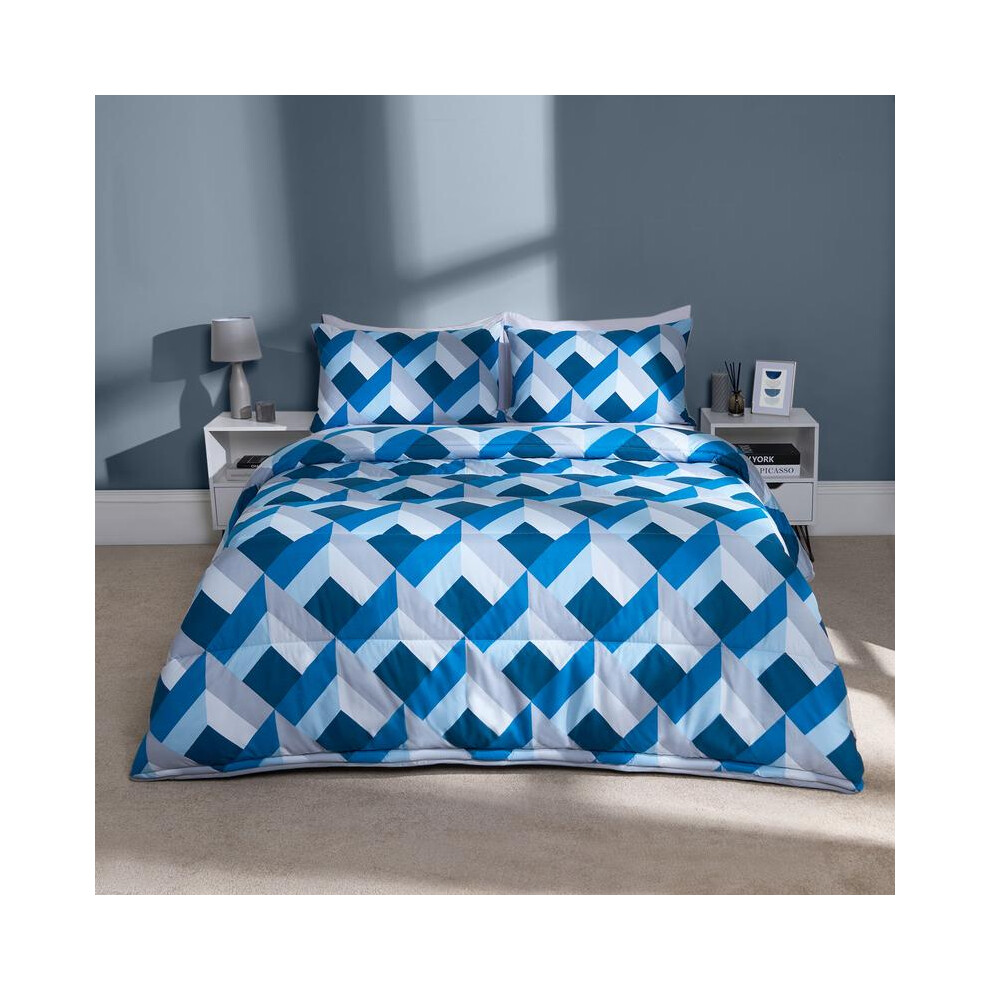 (Geo Teal, Double) OHS Coverless Quilted Duvet with Pillowcase Set Soft Fleece Teddy Sherpa Cable Knit 7.5/10.5 TOG All Year Round Summer Winter Campi
