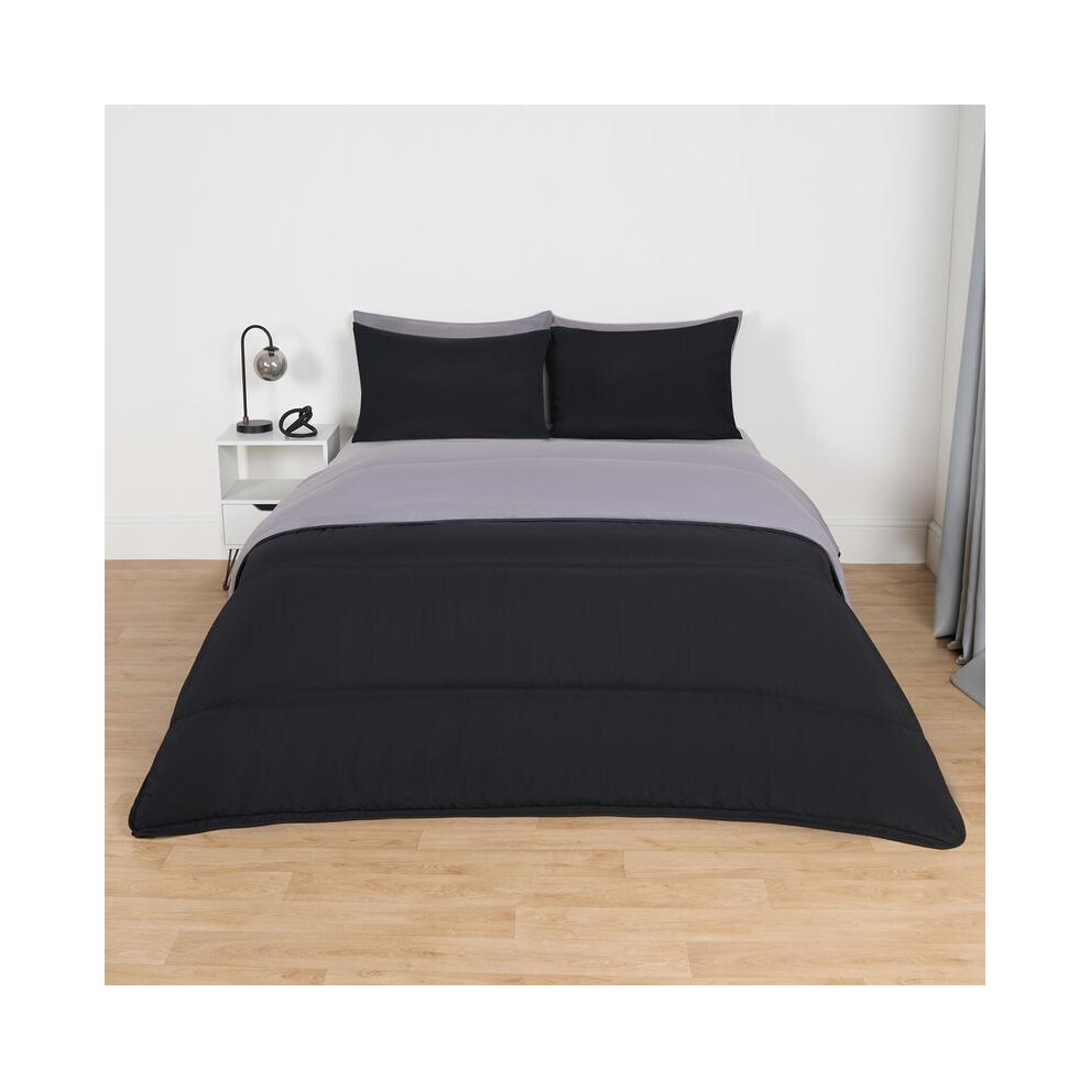 OHS Coverless Double Duvet 10.5 Tog, Reversible Quilt Double Washable Coverless Duvet Summer Winter Travel Camping Bedding Soft Comfy Bed Set with Pillowcase, Black/Grey