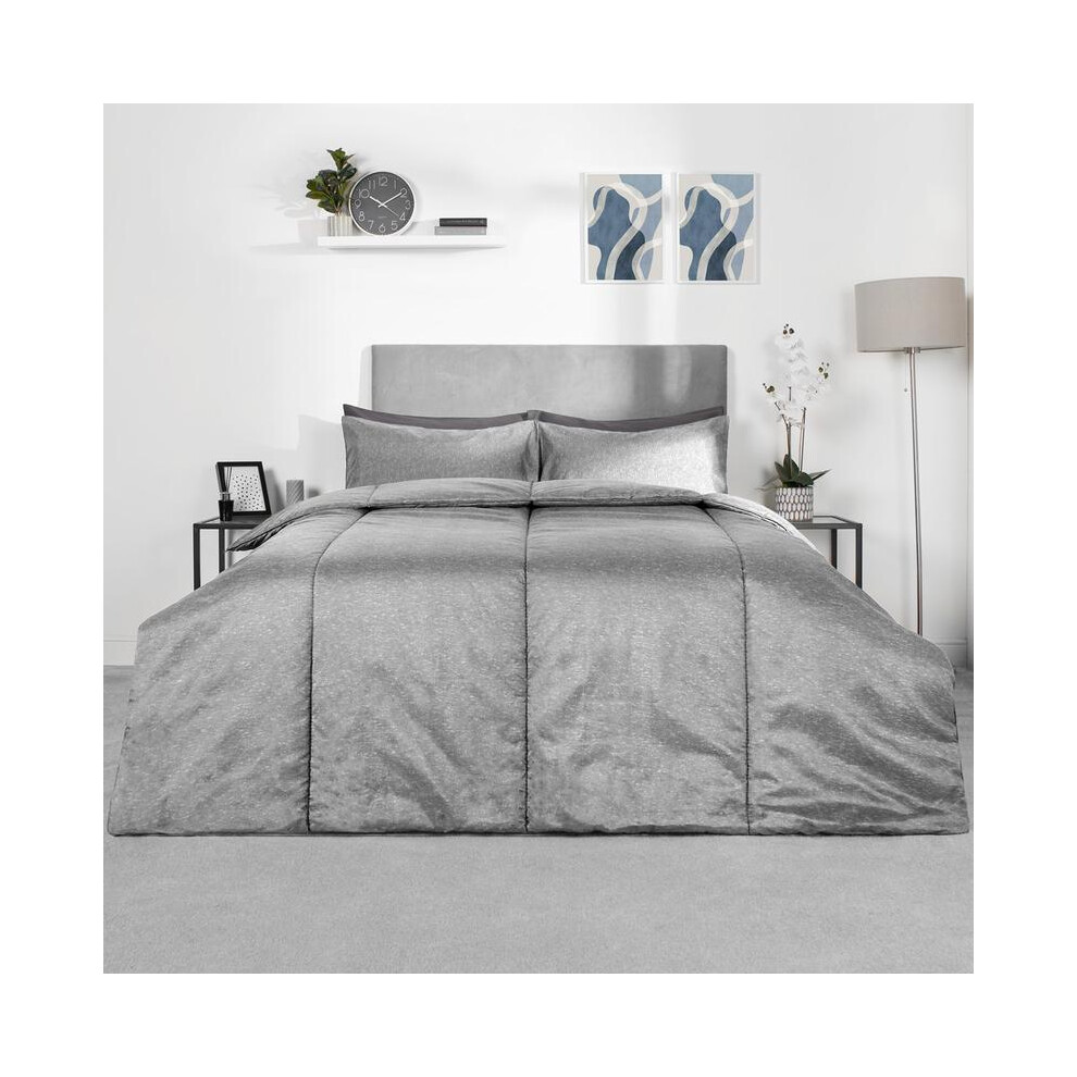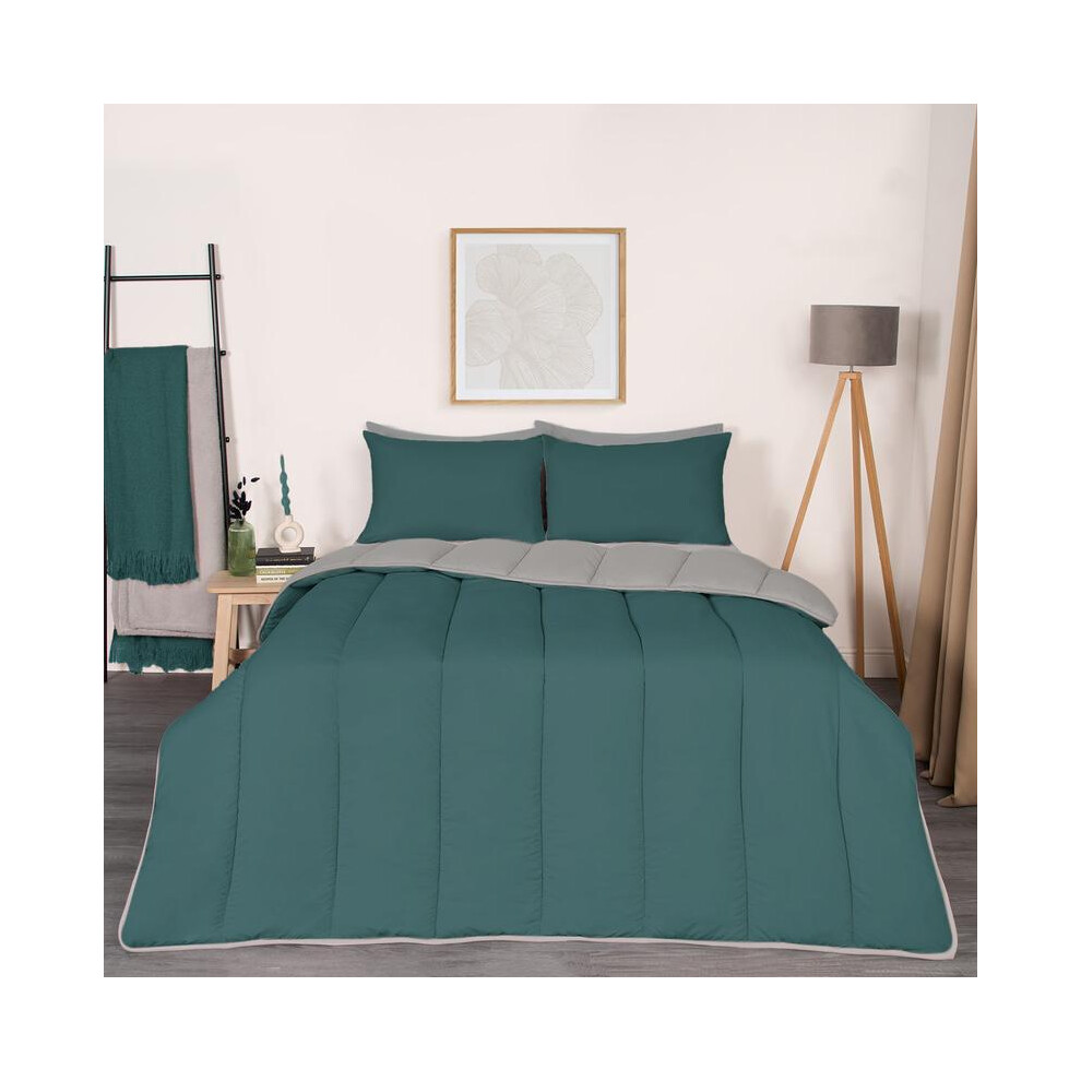 (Grey/Silver Reversible, Double) OHS Coverless Quilted Duvet with Pillowcase Set Soft Fleece Teddy Sherpa Cable Knit 7.5/10.5 TOG All Year Round Summe