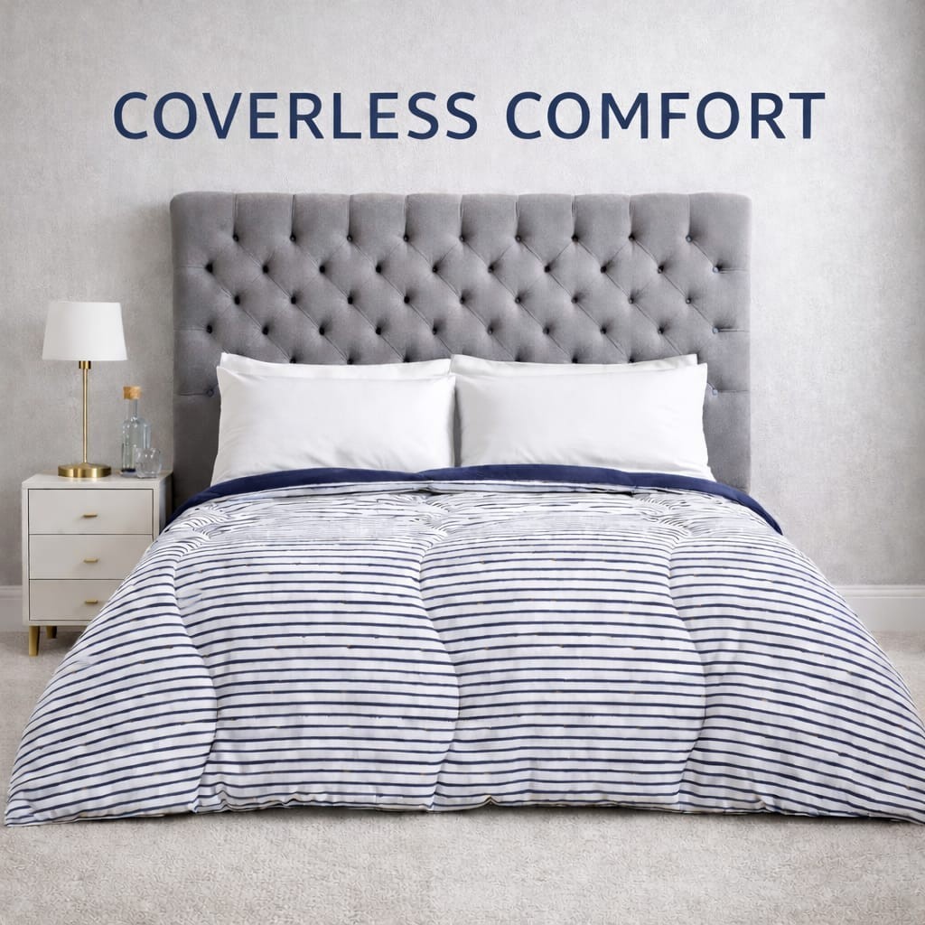Night Lark Coverless Duvet and Pillowcase Set, Spring Summer Collection – 6 Tog Coverless Double Duvet with Advanced Smartfil® Fibre, Machine Washable – Ticking Stripes, Double Bed Size
